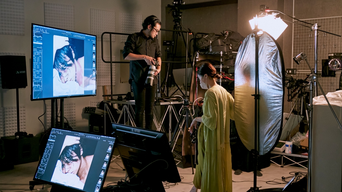 ここでは、ブランドの世界観を再現したセットでPRムービーとルック撮影を同時に行ったり、