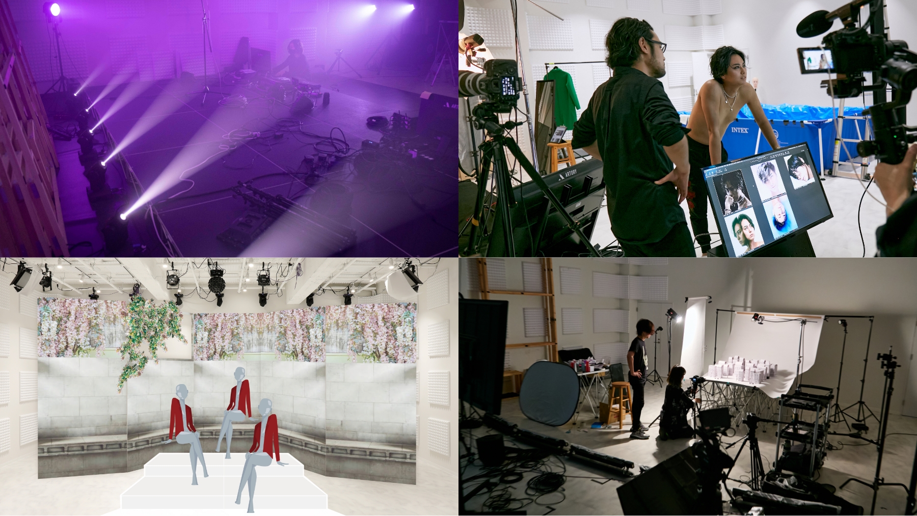 ここでは、ブランドの世界観を再現したセットでPRムービーとルック撮影を同時に行ったり、