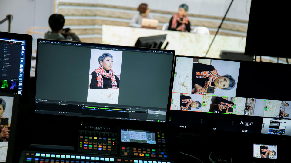 音声面では、ピンマイク・ガンマイク等を活用し、出演者の発言がしっかり聞こえるよう調整。同時通訳やナレーション挿入、視聴者とのコメント連携など、音声情報が重要となる配信においても、安定したマイク収音環境を整えています。