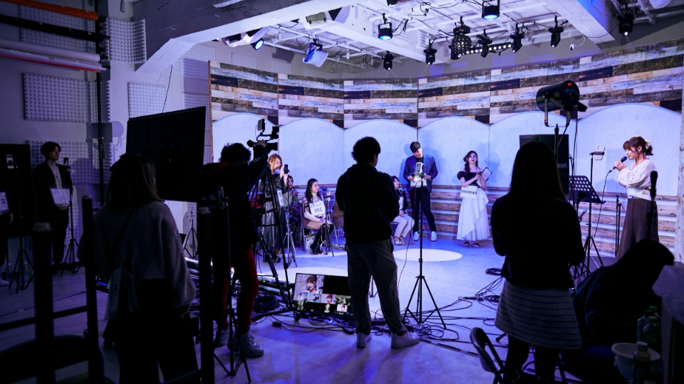 過去には、世界遺産・比叡山延暦寺でのファッションショー配信や、複数拠点をつないだ音楽イベント、ライブコマース型のショー演出など、舞台設計・収録・配信・映像編集・音楽制作を一貫して担う実績も多数。スタジオ内のシステムだけでなく、照明プログラム、DMX制御、映像演出、空間構成まで対応し、イベントの目的に合わせた設計・進行をサポートします。